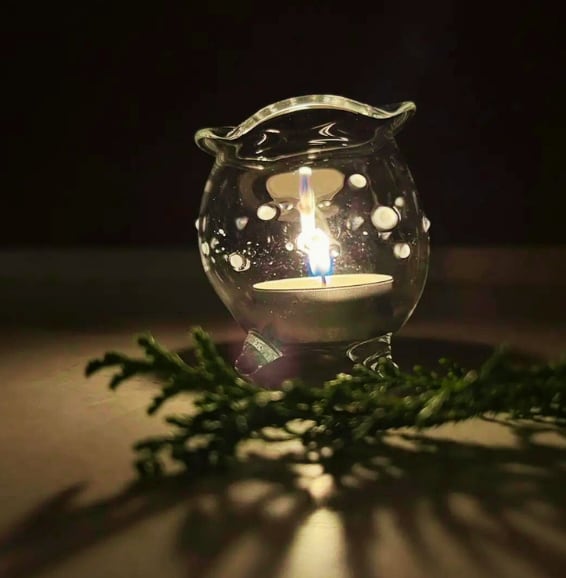 明日を照らす灯火(ともしび)をイメージしています。冬の間中、バイエルンの深い森の中ではちいさな灯火が春を待ちわびる人々の心を照らしています。2024年が明るい光で包まれますように。脚が付いているためテーブルが熱くなりません。ティーキャンドルを入れてご利用できます。ガラスの中でロウがこぼれた際は熱湯を入れてロウを流し、少しだけ拭けばお掃除も簡単です。耐熱ガラス使用。手作りのため写真と若干異なる場合がございます。